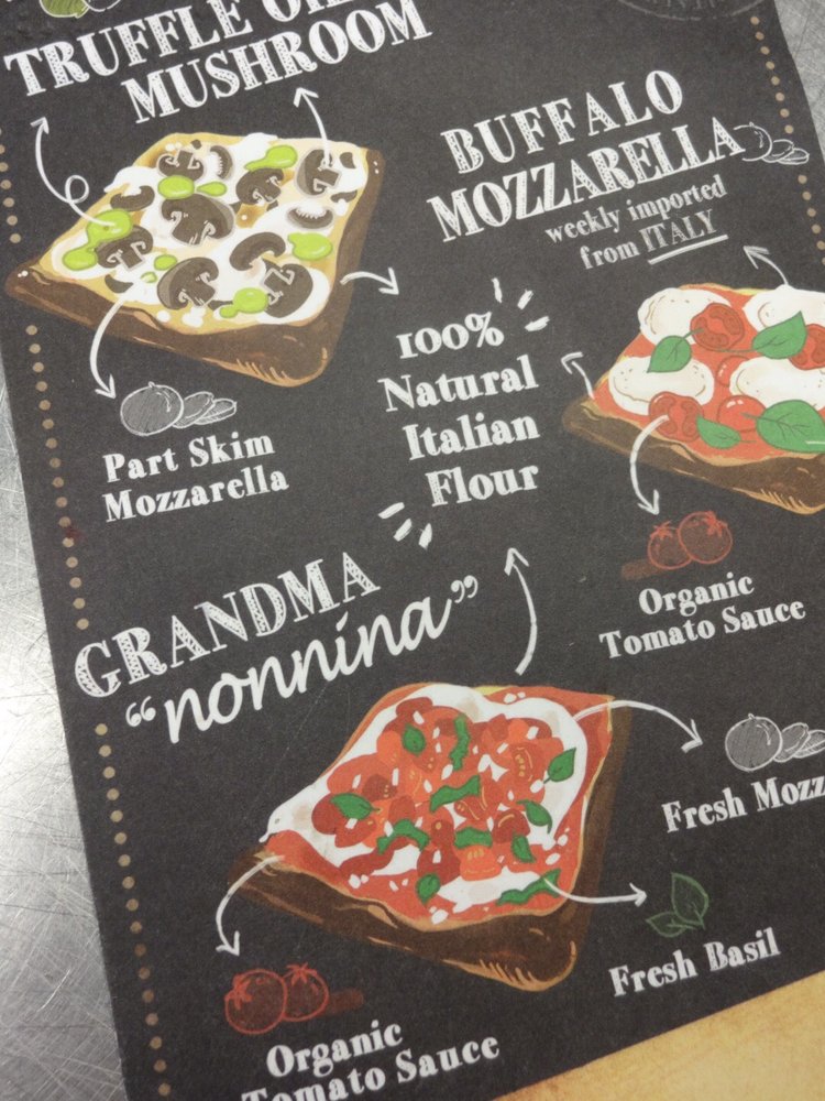 Organic Italian tomato sauce, fresh basil, fresh mozzarella, roasted garlic, Parmesan cheese and Italian virgin olive oil.